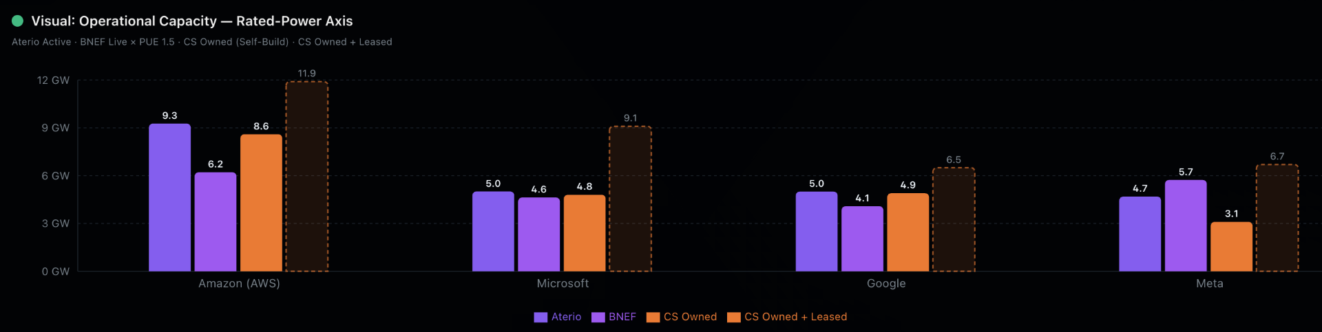 Hyperscaler disclosures on physical delivery: As discussed, these are a mix of US and global figures, and facility power vs. IT load definitions vary across companies, so hard to compare apples-to-apples but worth detailing.