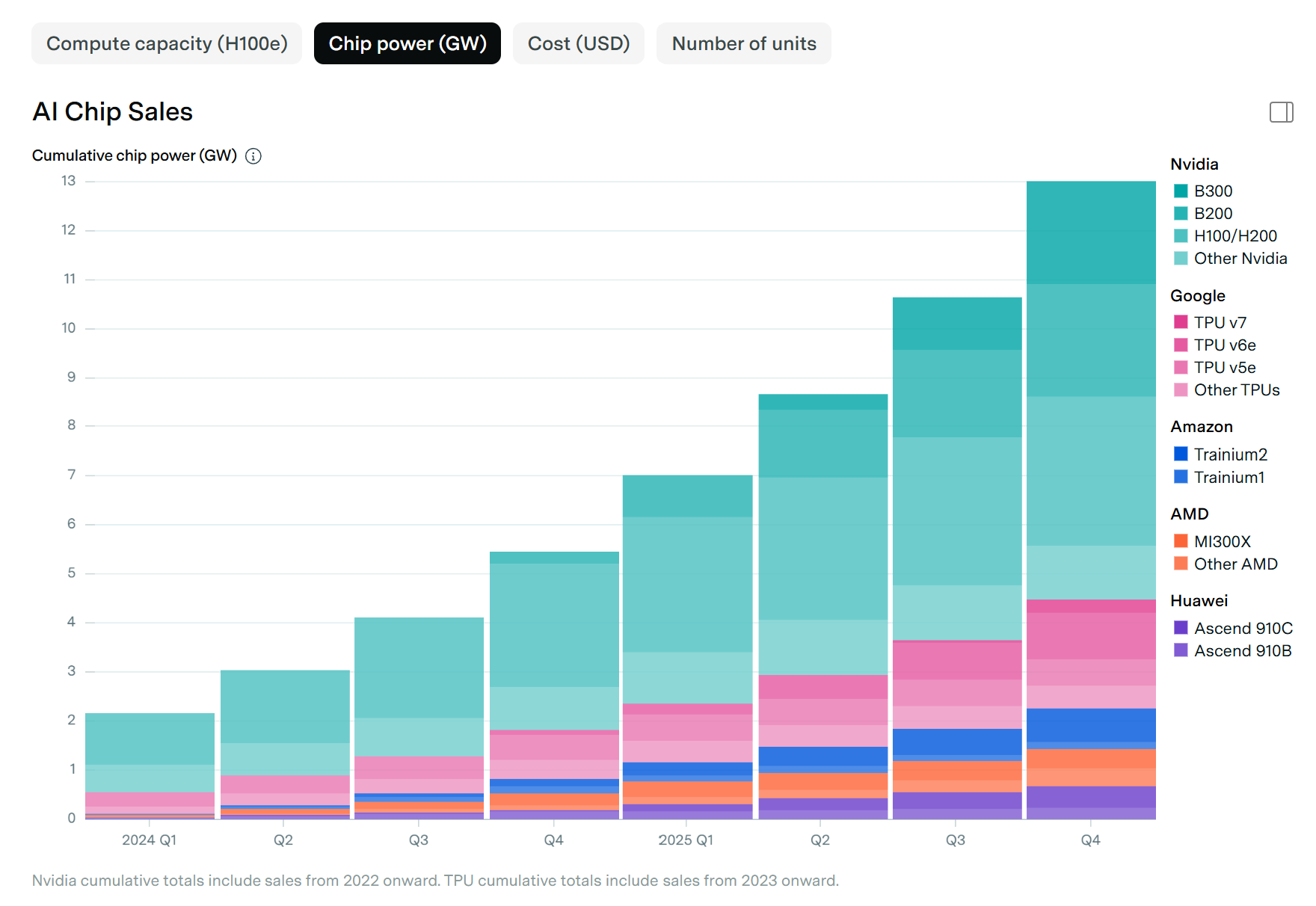 - Crude capex BOTE math: $600-700B in 2026 hyperscaler capex at roughly $40-50B per GW cost of fully built capacity also implies mid-teens GW. That's an imprecise conversion as capex covers equipment, data center shells, chips, and land that enter service across different years but it provides another directional anchor.
